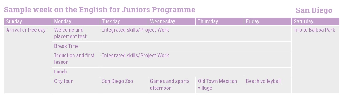 Nasz program odbywa się w naszej szkole, zlokalizowanej w centrum San Diego. To doskonałe miejsce do wszelkich wypadów na miasto - blisko jest stąd do popularnego nabrzeża, zielonych parków, tutejszego Zoo oraz muzeów (Midway Muzeum, Air and Space Museum). Również lotnisko jest położone w odległości kilkunastu minut od placówki. Na terenie budynku do dyspozycji studentów są przestronne, jasne i dobrze wyposażone sale lekcyjne, salon studencki, kafeteria z jadalnią, biblioteka i salon komputerowy. Jest także dostęp do bezprzedowowego Wi-Fi i maszyn z przekąskami. Gwarantujemy także dostęp do miejskiego basenu.
