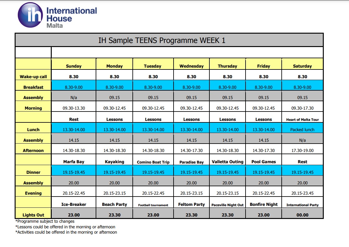 Czy możesz sobie wyobrazić swoje dziecko uczące się angielskiego przy jednoczesnym nawiązywaniu międzynarodowych znajomości i zabawie na pięknej wyspie na środku morza Śródziemnomorskiego? Wszystko to dodatkowo w bezpiecznym środowisku 4-gwiazdkowego hotelu z przepięknym widokiem na zatokę Paradise Bay. Nasz zróżnicowany program aktywności został stworzony z myślą o młodzieży, z uwzględnieniem tutejszego klimatu i lekcji angielskiego w wysokiej jakości, przeprowadzanych przez wykwalifikowanych nauczycieli angielskiego.