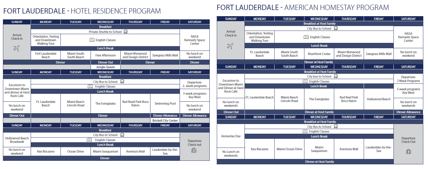 Lokalizacja naszego ośrodka zapewnia dogodny dostęp do wspaniałych plaż, będących idealnym miejscem do uprawiania sportów wodnych i opalania. Nasza szkoła znajduje się w śródmieściu, w spacerowej odległości od Las Olas Boulevard, licznych sklepów i restauracji oraz głównego dworca autobusowego miasta. Placówka jest w pełni klimatyzowana, aby nauka w tym gorącym i słonecznym mieście, była zawsze przyjemna i komfortowa.