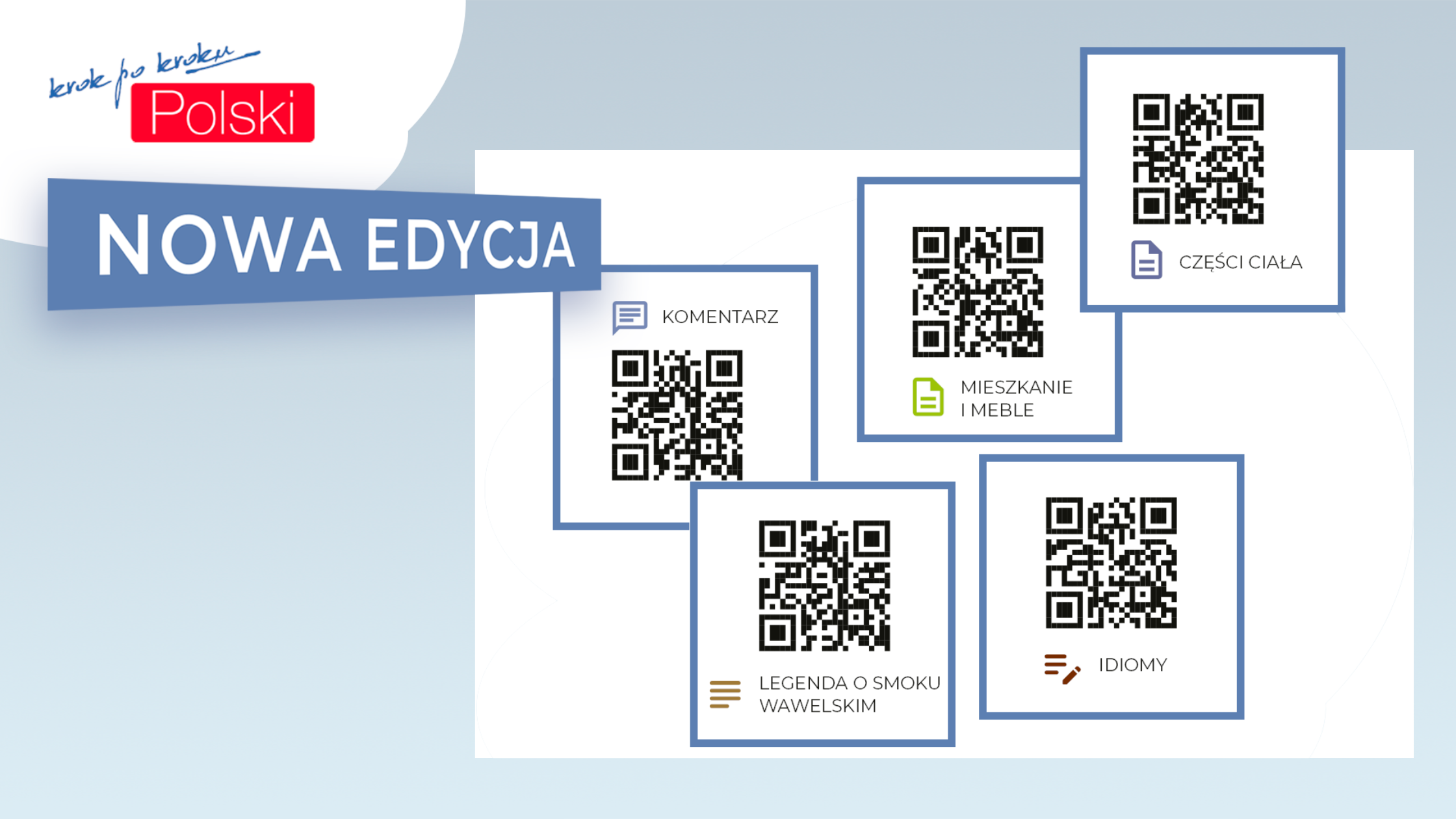 Publikacja została wzbogacona o kody QR, które umożliwiają szybki dostęp do dodatkowych materiałów i pozwalają wykorzystywać ćwiczenia w sposób funkcjonalny. Odsyłają one między innymi do słownika z tłumaczeniami na wiele języków, fiszek, testów oraz wybranych części serii „CZYTAJ krok po kroku”, dopasowanych tematycznie do poszczególnych rozdziałów.